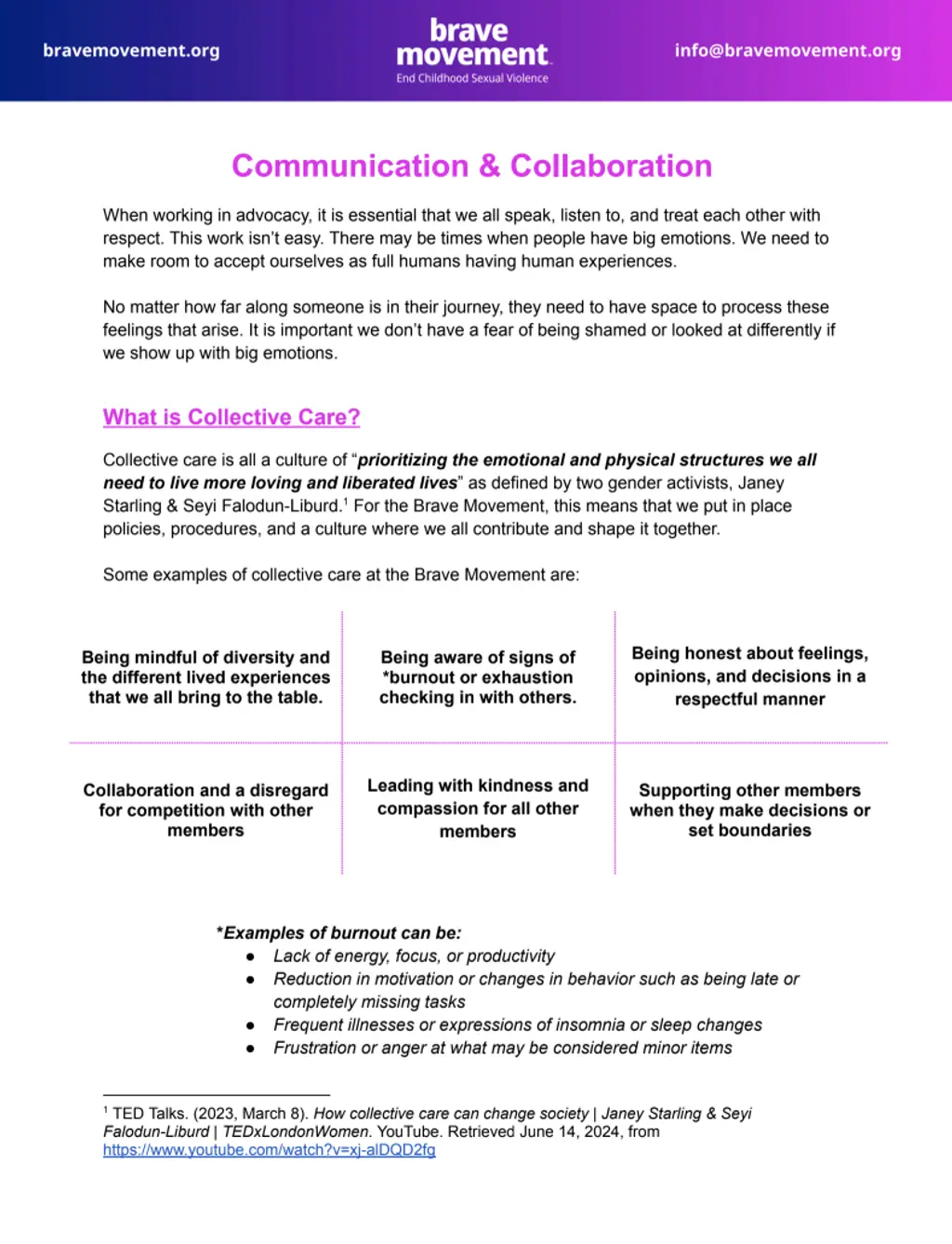 When working in advocacy, it is essential that we all speak, listen to, and treat each other with respect. This work isn’t easy. There may be times when people have big emotions. We need to make room to accept ourselves as full humans having human experiences.