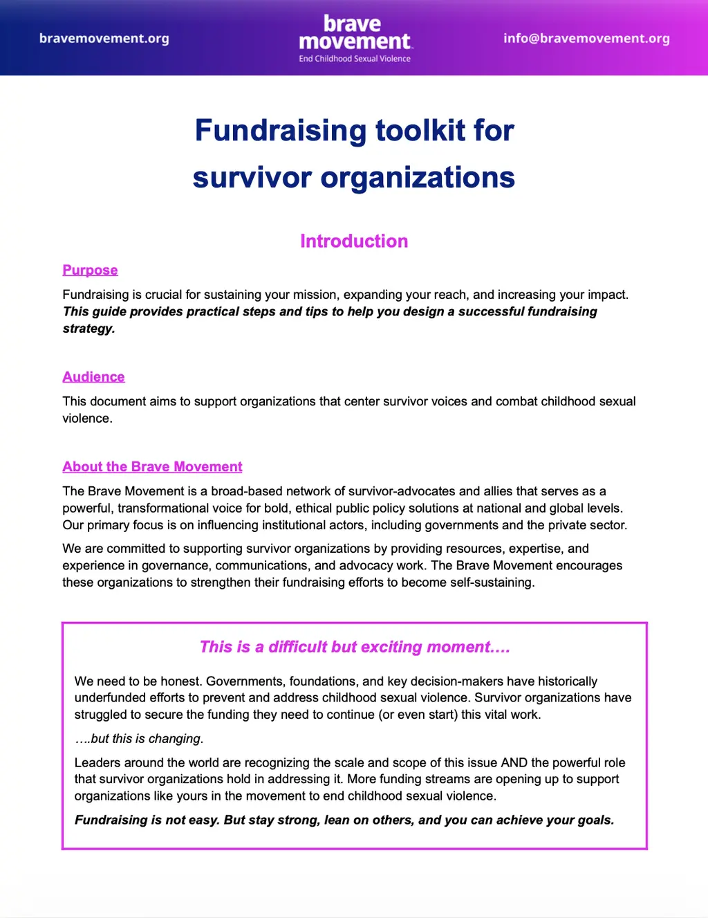 This document aims to support organizations that center survivor voices and work to end childhood sexual violence.
